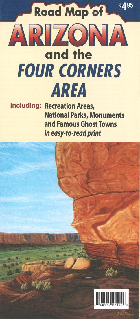 This folded road map of Arizona and the Four Corners from North Star Mapping includes recreation areas, National Parks, monuments, and famous ghost towns in easy-to-read print with street index & points of interest denoted.