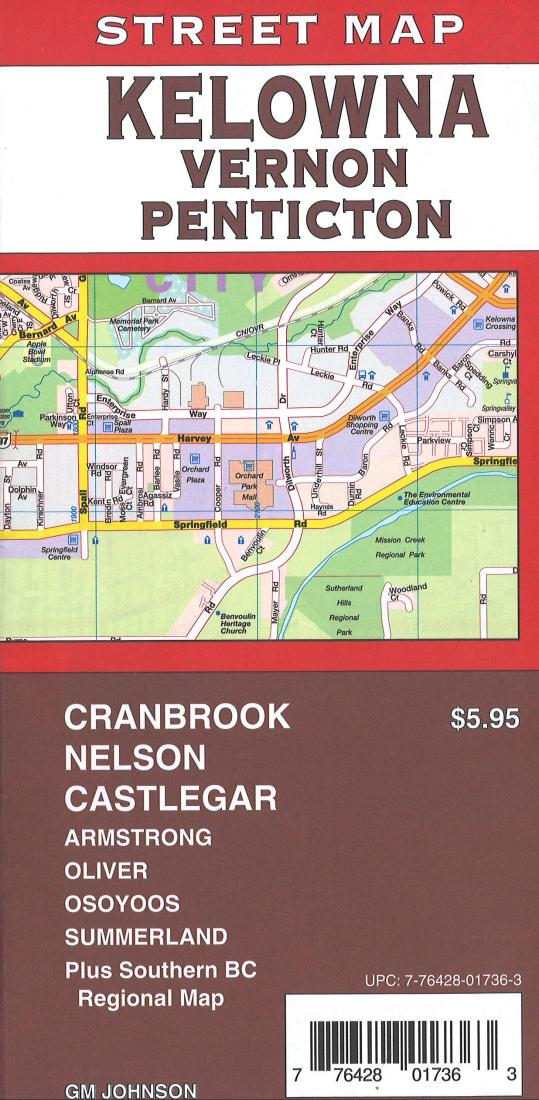 This GM Johnson title provides road and tourist details for Cranbrook, Nelson, Kelowna, Vernon, Penticton, Armstrong, Castlegar, Coldstream, Enderby, Lake Country, Nelson, Okanagan Landing, Oliver, Osoyoos, Oyama, Peachland, Summerland, Vernon, West Kelowna, and Winfield, as well as the surrounding Southern British Columbia area.
